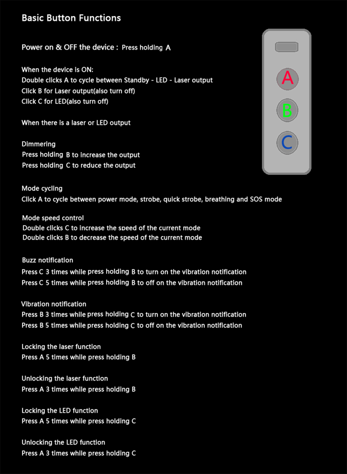 | Button function customization (device button logic can be changed as desired) |